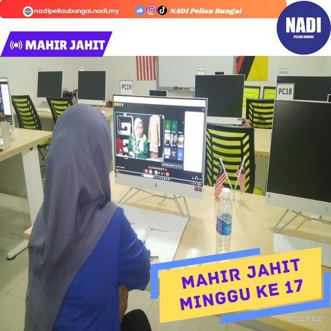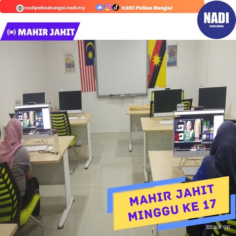 Pada 09/06/2025, Isnin, telah berlangsungnya kelas Mahir Jahit yang dihadiri oleh 3 orang peserta. Kelas Jahit minggu 17 ini telah digabungkan bermula pada jam 9:30 sehingga 11:30 pagi. Kelas Mahir Jahit ini juga telah diadakan di NADI Peliau Bungai secara online. Aktiviti yang dipelajari oleh peserta pada minggu ini ialah mendraf pola dan memotong fabrik tudung 2 lapis.